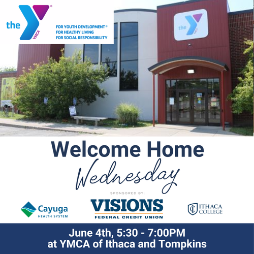 Welcome Home Wednesday is presented by Visions Federal Credit Union, with support from Cayuga Health System, and Ithaca College